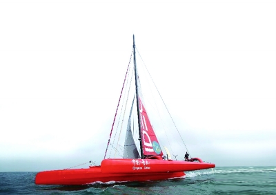 郭川团队驾驶的三体大帆船正是这样一艘传奇帆船。这艘巨无霸拥有一串骄傲的数字:长29.7米,宽16.5米,桅杆高32米,重11吨,船帆顺风最大面积 520米,迎风最大面积350米。2008年,法国航海家乔伊恩船长驾驶这艘船创造了57天13小时34分06秒单人不间断环球帆船航行世界纪录。随后,他又驾船打破了一连串世界纪录。这艘船曾经在20小时内航行了660海里,速度之快,用郭川的话“可以和天气赛跑”。