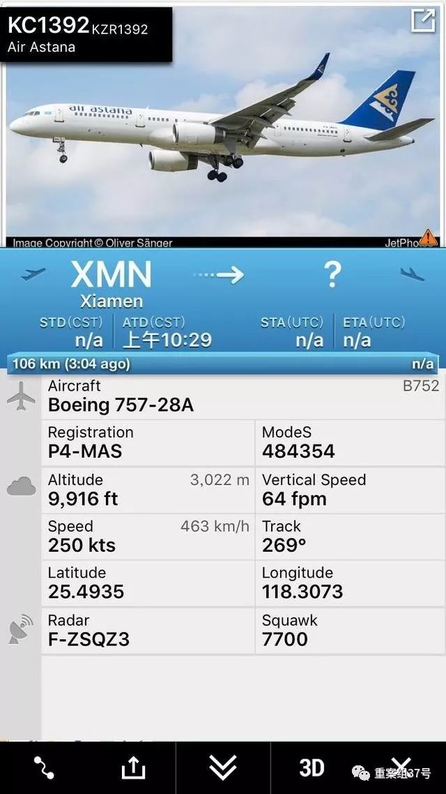 今日(10月12日)午间,阿斯塔纳航空的KC1392航班飞机从厦门机场起飞后,因起落架故障返航,降落前,飞机挂出“7700”紧急代码,并在厦门区域盘旋3小时,于14时19分安全落地。 重案组37号(微信ID:zhonganzu37)在咨询航空领域专业人士后了解到,飞机盘旋的原因是为了防止起火或者爆炸,先在“空中放油”然后再降落,作为十几年前已经停产的波音757,出现机械故障情况其实不足为奇,而“7700”紧急代码一经挂出,陆地上所有飞行器都要给它让行。 2017年10月12日,福建厦门,哈萨克斯坦阿斯塔纳航空的一架波音757客机试飞现异常后安全降落在厦门机场。 波音757因起落架故障盘旋厦门上空 今天(10月12日)中午12时10分,“甘肃省民航机场集团”发布微博称,一架阿斯塔纳航空的757飞机在厦门区域因起落架问题盘旋,并挂出了“7700”紧急情况代码,厦门机场已启用应急保障,所有救援设备已就绪。 今日下午,哈萨克斯坦阿斯塔纳航空方面就此事发表情况说明称,今天上午,该架波音757-28A飞机是在厦门太古维修基地进行定期检修后返回,机上并没有乘客,起飞后不久,机组便收到起落架故障的信号。 一名从业多年的民航机长告诉探员,故障代码“7700”是飞机向地面发出的一种特殊代码,用于告知“飞机正处于危险状态”。 3小时盘旋耗油减重后降落地面 从该航班的飞行轨迹来看,该波音飞机在厦门区域以北德化县上空盘旋了多圈。 阿斯塔纳航空方面说明称,当时飞机上并未运载任何乘客及货物。飞机上装有足以从厦门飞回阿拉木图的燃油量,于是在厦门上空进行了大约3小时的盘旋以消耗燃油从而为飞机减重。 今日下午,厦门机场通过官微发布消息称:2017年10月12日10:39分,厦门机场接空管通知,阿斯塔纳航空一架B757飞机因起落架疑似故障返航厦门机场。厦门机场立即启动应急响应程序,厦门市领导第一时间赶赴现场坐镇指挥。飞机已于14:19分安全落地,目前相关原因尚在排查之中。 厦门日报随后发布消息称,该架飞机起飞后,机组发现起落架有故障报警,经过低空通场检查,发现起落架正常,随后机场方面与机组配合,多家航空公司优先让1392航班落地。 最终,飞机于北京时间14:19平安降落,具体原因有待技术调查的介入。 ▲参与处置事件的机长李峥。 受访者供图 重案对话 应急机长:“用带口音英语跟机上人员聊家常” 12日下午,重案组从厦门航空方面获悉,地面接到故障情况报告后,厦门航空B757机型师、机长教员李峥被紧急派往塔台协助处置。今晚,李峥向探员讲述了处置过程,他表示,自己用英文跟机组人员沟通近3小时,期间,为了让机组人员缓解压力,“还用带口音的英语跟他们聊家常。” 重案组37号:你是什么时候接到任务的? 李峥:11点左右,厦航飞行部通知我,说机场有一架外国航司的波音757起落架故障。因为我从2001年就开这型飞机,算是同行,就被派去协助处置。 重案组37号:处置过程是怎么样的? 李峥:接报10分钟后我就带着资料到塔台了。然后通过信号频道跟机组建立沟通,了解了飞机情况。经过核对,我们汇总起落架故障的所有情况,并一一排除。之后飞机做了一次低空通场后,确认是起落架无法收回。直到飞机落地前40分钟,我们才最后做出降落的决定。 重案组37号:以前有过类似经历吗?会不会紧张? 李峥:这种情况我也是第一次碰到,心里一直想着,飞机尽快安全落地。经验告诉我,不能紧张。 盘旋留有很长时间做准备,我们甚至做了最坏的打算。沟通过程中,我能感受到机组人员的压力,毕竟他们在天上,我们在地下,这个时候,我必须给机组信心。 重案组37号:在这过程中怎么缓解紧张和压力? 李峥:盘旋时,频道里很长一段时间是沉默的,为了缓解紧张气氛,我跟机组人员聊起家常。双方用带点口音的英语问对方“吃午饭了吗”。这个时候没有国界之分,只有同行。 重案组37号:看到飞机平安落地之后什么感受? 李峥:看到飞机平安降落了,才松了一口气。落地后就没有跟机组再交流了,他们还有很多事要做,但知道他们都平安,就很高兴了。 重案解读 起落架故障是个什么“鬼”? 曾在国航驾驶民航飞机的赵洪机长说,起落架故障属于飞机本身的机械故障。分为收放系统故障和信号识别故障两种情况。 从业20余年、驾驶过波音客机的民航机长陈建国介绍,飞机起飞后起落架发生故障,可能导致面临迫降,危险性极高,在降落时飞机各部位可能会和跑道摩擦。 就此架故障飞机来判断,应该是起落架在飞机起飞后无法收回,并不属于特别危险的情况:“一般不会影响飞机降落。” 在赵洪机长看来,波音757发生类似的机械故障,属于正常情况:“‘757’是有年头的老飞机,即使是最新的‘757’,到现在也已经使用了十多年的时间,出现机械故障不足为奇。” 资料显示,波音757为美国波音公司开发的中型单通道窄体民航客机,用于替换波音727及737原始机型,并在客源较少的航线上作为波音767的补充。波音757于1983年投入服务,并于2005年11月18日停产。 飞机盘旋是为了安全降落 此次事故中,波音为什么要盘旋这么久?陈建国介绍,当飞机需要返航时,在时间紧急的情况下,比如火警或者重病人,驾驶员可以选择超重落地。但在不紧急的情况下,比如起落架问题,飞机需要减少燃油,而这架波音757飞机上没有放油装置,只能通过空中盘旋消耗油量。 “通过飞行轨迹能看到,这架飞机在厦门上空盘旋23圈之后才落地,