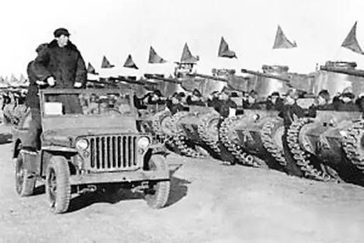 毛泽东在西苑机场检阅部队 在天安门城楼上向陆续通过的三军挥手的毛泽东,并非没有乘车检阅过部队。1949年3月,党中央移驻北平,在西苑机场,毛泽东乘坐一辆缴获的美式旧吉普车检阅了部队。 那辆吉普车,没有号牌。 |