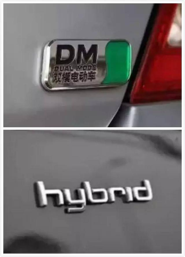 大家最常见的标识就是hybrid(混合动力)、EV(纯电动)、HEV(油电混合动力),还有DM(双模,即纯电动+混动)。