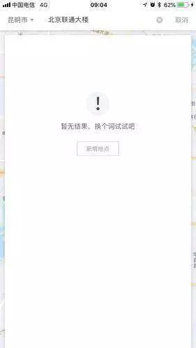 为什么 原来终点显示的是北京联通大楼 这究竟是为什么呀?“4.8公里,顶多10多元的单子,竟然要付8000多元,李女士赶紧询问滴滴司机,师傅说平台这边显示需要支付9元多。”李女士说,“后来她仔细看了下,终点竟然显示的是北京联通大楼,但是自己下订单时明明选的是丽江的联通大楼啊。” 有没有可能是李女士点错了?叫车时选的就是北京联通大楼? 做测试 定位丽江搜北京联通大楼,显示“无结果” 春城晚报记者联合周边的朋友做了个小测试:打开滴滴软件,定位丽江搜索“北京联通”,得到的是“暂无结果,换个词试试吧!”的页面,下方还有“新增地点”几个字。 同样,定位昆明,搜索“北京联通”,出现的仍然是“暂无结果,换个词试试吧”的页面。