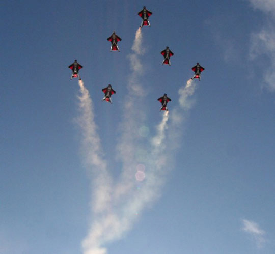 “翼服”飞行爱好者在德国进行了精彩的“翼服”飞行编队表演。