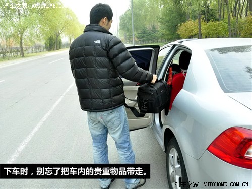 建议大家不要在车辆中放置贵重内物品,应在下车时把贵重物品拿走。同时锁车后,也要拉一拉车门,检查一下车是否锁好,也不要忘了检查车窗,包括天窗是否都已关闭。 4.陌生地区提高警惕