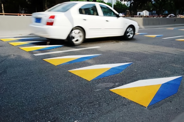 • 2、彩色三维立体减速标线 与传统的菱形减速标线不同,这种三维立体减速标线就会非常醒目,效果非常好。