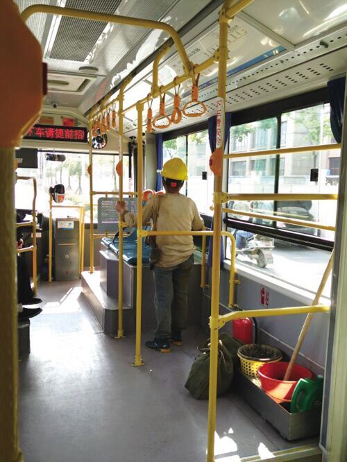 怕弄脏公交建筑工站一路 司机:坐吧,脏了我擦
