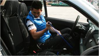 ![]() 短衣襟小打扮,置身清爽的户外,即使只有几样简单的器械,一样可以练遍全身 (请注意帅哥,他可是著名的健身教练朱晓辉哟!来看他的博客 http://blog.sina.com.cn/zzxxhh) ![]() 车内进行上肢训练最为方便,只要一根弹力绳就能顺利完成,开车久了停下来,伸展一下吧。 ![]()