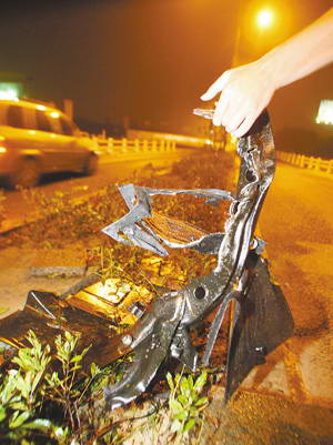 借助路灯光,现场依然清晰可见。空气里还残留着焦糊味,满地的水迹、油污及“玛莎拉蒂”各类零部件碎片,混作一团。