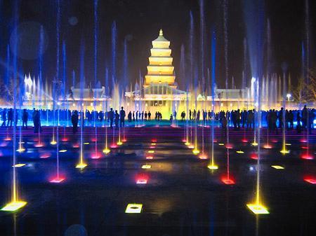 大雁塔夜景 第三天,经西安高架快速通道上了西临高速29公里在兵马俑站下了,走了近8公里秦俑馆公路,到达兵马俑停车场。秦始皇兵马俑陪葬坑,誉为"世界第八大奇迹”。请了个导游50元,那个用耳机的自动导游劝大家就不要用了,我开始就花10元租了个,不好用,当然也可以尾随其他旅游团免费听讲解。 回城后,西安市内游:西安钟鼓楼,大雁塔,大清真寺,碑林,西安历史博物馆。打的先到大雁塔和大慈恩寺,唐三藏玄奘曾在这里主持寺务。号称亚洲最大的音乐喷泉所在地大雁塔广场,好像在四川我也看到过比这还大的音乐喷泉。 西安历史博物馆,一早就要去排队领免费票,去太晚了,就没进去成。 最后逛城墙。古城墙是这座十三朝古都地面之上最辉煌[综述 图片]的建筑遗迹,有3100年历史,明朝初年,朱元璋在唐皇城的基础上建成的。晚上,灯光打起很好看,可以在城墙上租个自行车逛城墙。 碑林旁边,是古玩一条街,比成都的古玩市场大10倍,这里的玉镯8元一个打批发。 小吃:回民街 牛羊肉泡馍 柿子饼 肉夹馍 香爆羊排 凉皮就是炒饭 酸梅汤 镜糕、凉糕 歧山面 灌汤包子 葫芦头泡馍 葫芦头就是大肠 老刘家牛羊肉泡馍馆 腊牛羊肉。 特产:石榴 柿子。