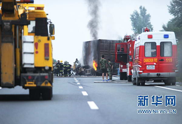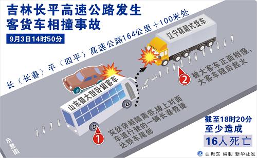 3日下午,吉林省境内发生的特大交通事故已经造成17人死亡。经进一步确认,共有37人受伤,伤者中有4人伤势较重。 事故发生后,受伤人员先后被送往吉林大学第一医院二部和吉林大学中日联谊医院等医院进行救治。据介绍,目前这4名伤势较重的人员,经过及时救治目前并无生命危险。但医生表示,所有伤者都不排除发生病情变化的可能。 当日14时53分,长春绕城高速公路哈尔滨方向164公里处,青岛华旅运输公司的卧铺客车左前胎突然爆胎,冲过护栏后驶入对向车道,与辽宁省营口经济技术开发区金马物流有限公司的半挂集装箱货车正面相撞后,两车起火发生燃烧,造成卧铺客车内13人当场死亡,半挂集装箱货车内3人当场死亡,伤者中一人在送往医院途中死亡。