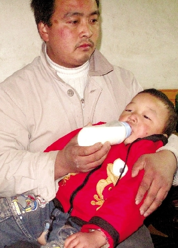 躺在爸爸怀中的儿子还不知道,妈妈已离开人世。