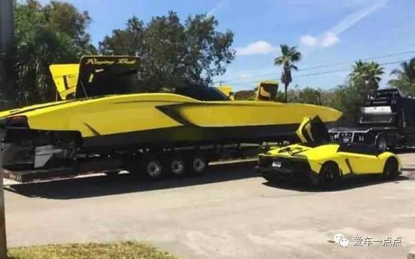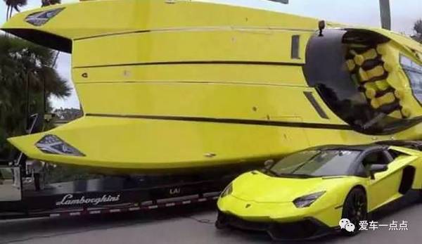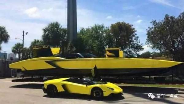 兰博基尼在超跑界的造诣可谓是让人称服,出人意料的推出了一款款高性能的超跑,而眼前的这个庞然大物也是兰博基尼家族的,世界唯一一台兰博基尼游艇,旁边还有一辆兰博基尼Aventador,这是家族的旗舰超跑,也是近千万的售价,这台游艇的灵感就来自于这辆大牛。