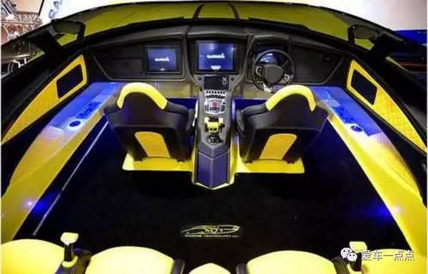 另外这个座椅也是取自于兰博基尼Aventador,碳纤维的运动型座椅,无论是包裹性和舒适性都是做到了精致,毕竟超跑的座椅也是很重要的部件,这游艇上的座椅也是如此,后排有四个座椅,桶型的设计对于乘客的身体有着很好固定作用,别提多么的享受了。