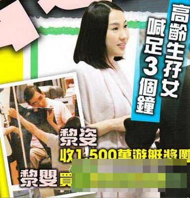 黎姿弟弟为外甥女满月酒特地去买新衣。 黎姿结婚一年多,在7月24日为富商马延强诞下双胞胎女儿,她开心得抱着一对女儿哭了3个小时,家人也为之动容。马延强为答谢爱妻,送上价值1500万的豪华游艇给她,游艇更以法文“Bonheur”(幸福)命名,尽显爱妻之情。