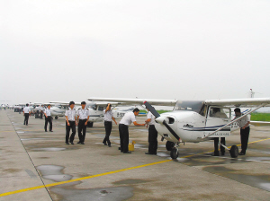 飞行学院的初教机训练,主要是使用从美国引进的低速、轻型、活塞式单发螺旋桨C-172R机型进行基本驾驶技术训练,由具有扎实理论功底、娴熟飞行技术、丰富教学经验的责任飞行教师任教。