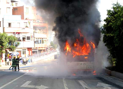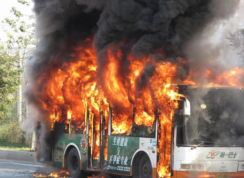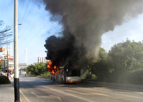广州一辆公交车起火 浓烟几百米高[组图]