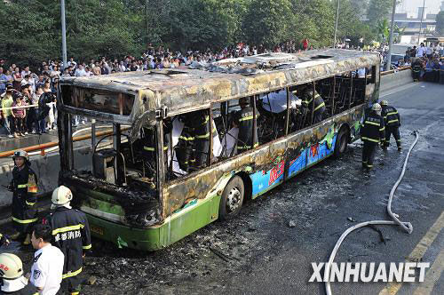 新华网成都6月5日电 5日8时许,成都市北三环川陕立交桥处发生一公交车燃烧事故,至记者发稿时,事故中已有25人死亡、76人受伤。目前伤者分别在成都二医院和成都陆军总医院紧急救治。 成都市政府新闻办公室10时40分左右在事故现场附近进行了简短的新闻发布。成都市市长助理、政府新闻发言人毛志雄介绍,事故车辆是9路公交车,在从天回镇驶往市区的途中,在川陕立交桥下桥处发生燃烧。 成都市公安交管部门介绍说,这辆公交车并非新车,在目前成都天气并不炎热的情况下,该车是否发生自燃以及具体原因,需要经过技术部门详细的勘察后才能下结论。 5日12时左右,记者在成都市川陕立交桥附近看到,上午发生燃烧的公交车残骸已被拖离,现场已清理完毕,交通恢复正常。 专题:成都公交车燃烧 死伤惨重 (本文来源:新华网作者:肖林、黄毅) |