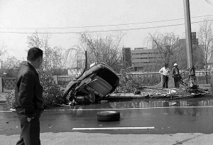2008年12月21日清晨6点左右,杭州动物园门口,一辆黑色轿车撞上电线杆,副驾驶座上一男一女当场死亡。治安监控显示,6时04分30秒前后,出事车辆出现在镜头中,车速相当快,估计在每小时100公里左右。而虎跑路的限速是每小时60公里。这辆限载5人的轿车,出事时车内一共坐了七个人。事发前司机喝了酒。